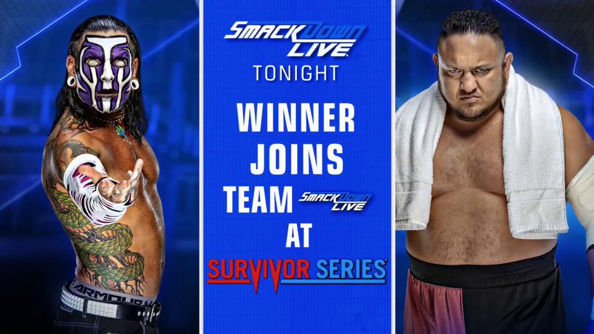 Backstage: En relación a lo visto minutos antes, Daniel Bryan elige a Jeff Hardy y The Miz hace lo propio con Samoa Joe para dirimir cuál será el último miembro del SmackDown Team en un mano a mano.