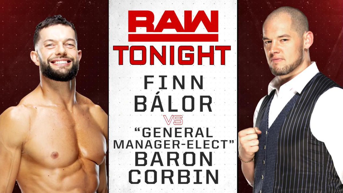 Se recuerda la lucha entre el “GM Electo” Baron Corbin y Finn Bálor anunciada temprano para esta noche.