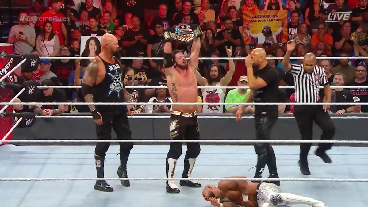 Con la compañía de Gallows & Anderson, The Phenomenal One derrotó a Ricochet y sale de Extreme Rules con el título secundario de RAW.