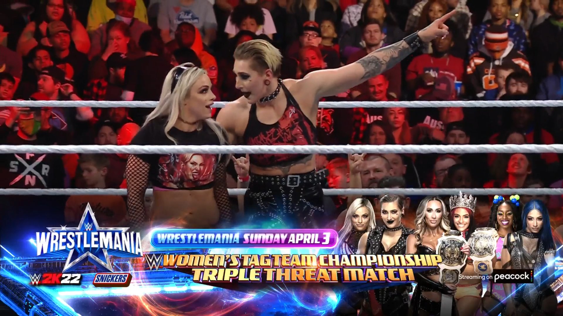 Lucha no-titular. Si Rhea & Liv ganan, se suman al WWE Women’s Tag Team Championship Match en WrestleMania 38. Un buen trabajo en equipo de las campeonas hizo que Rhea fuera sometida buena parte de la lucha, pero Carmella se iría a conversar con Corey Graves y dejó a Zelina sola, quien recibió un Riptide de Rhea para una inapelable cuenta de tres. De esta forma, la lucha titular será una Triple Threat Match.
